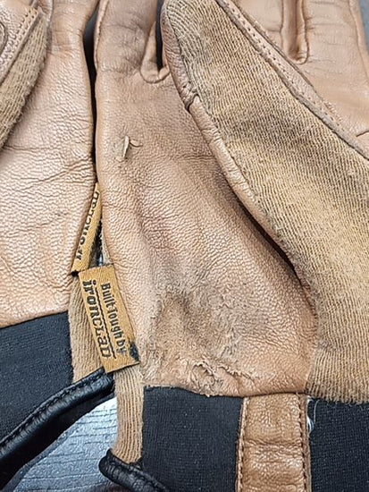 Knuckle armor. MSRP $112. Heavy wear to right glove, especially at heel of palm.