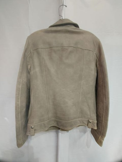 Fashion sheep leather not for biking. Classic asymmetric zip biker style w/ zip pockets & snap collar. Unisex fit. Very little wear.