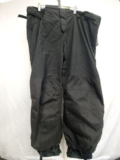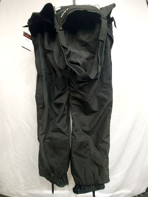 Waterproof rain pants with bib & suspenders. Zips open up leg completely. Also have velcro leg closes. Very nice design. Men's fit.