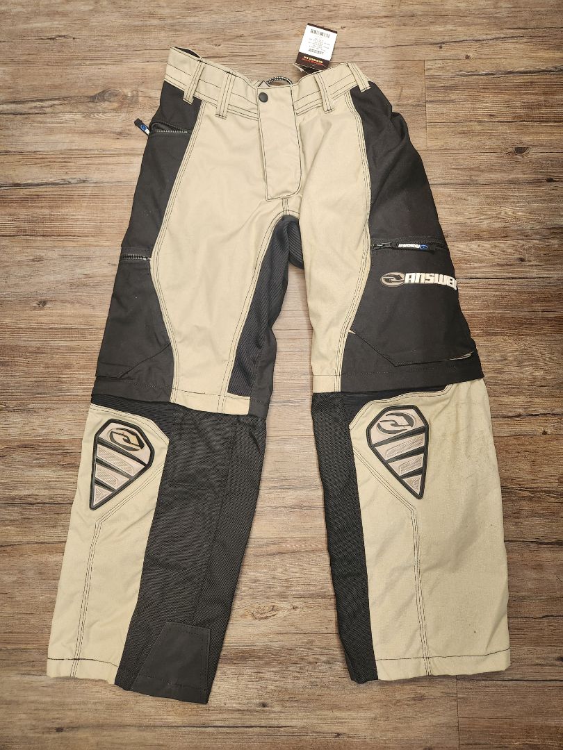 Motocross style pants. Legs zip off to convert to shorts. Men's sizing. Slight wear