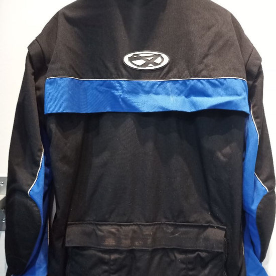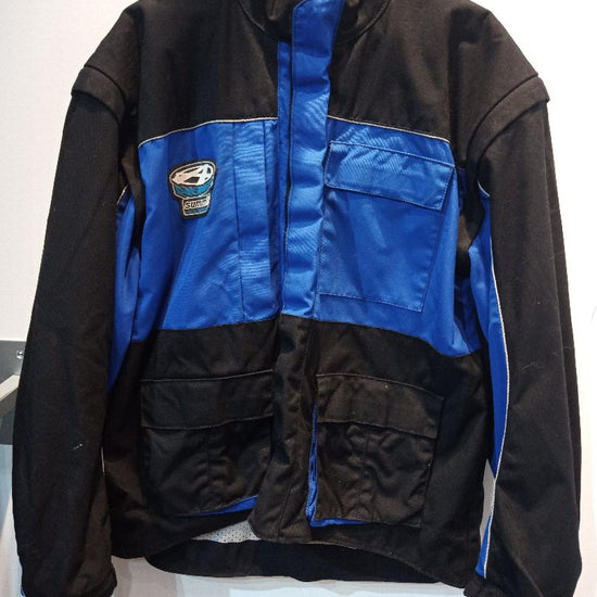 Sleeves zip off to convert to vest. Light padding at elbows. Reflective piping. Men's sizing. Slight wear