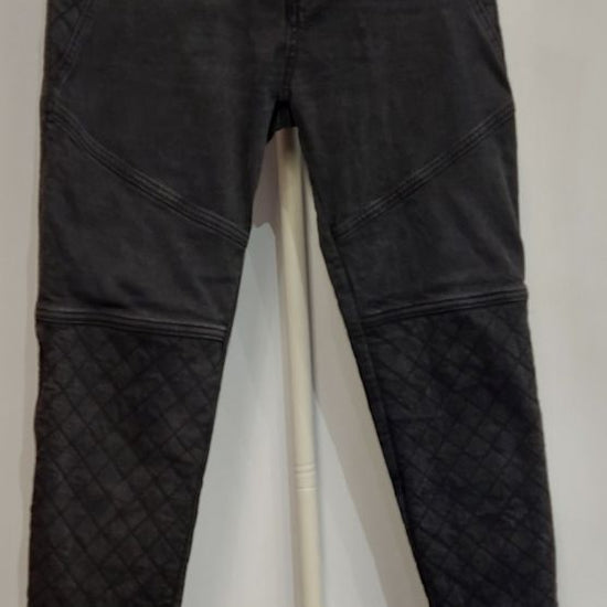 Jeans made for riding. Now defunct high end brand. Knee and hip armorable. Kevlar lining at knees. MSRP $445. Women's sizing. Slight wear