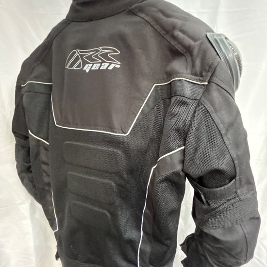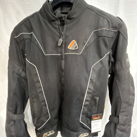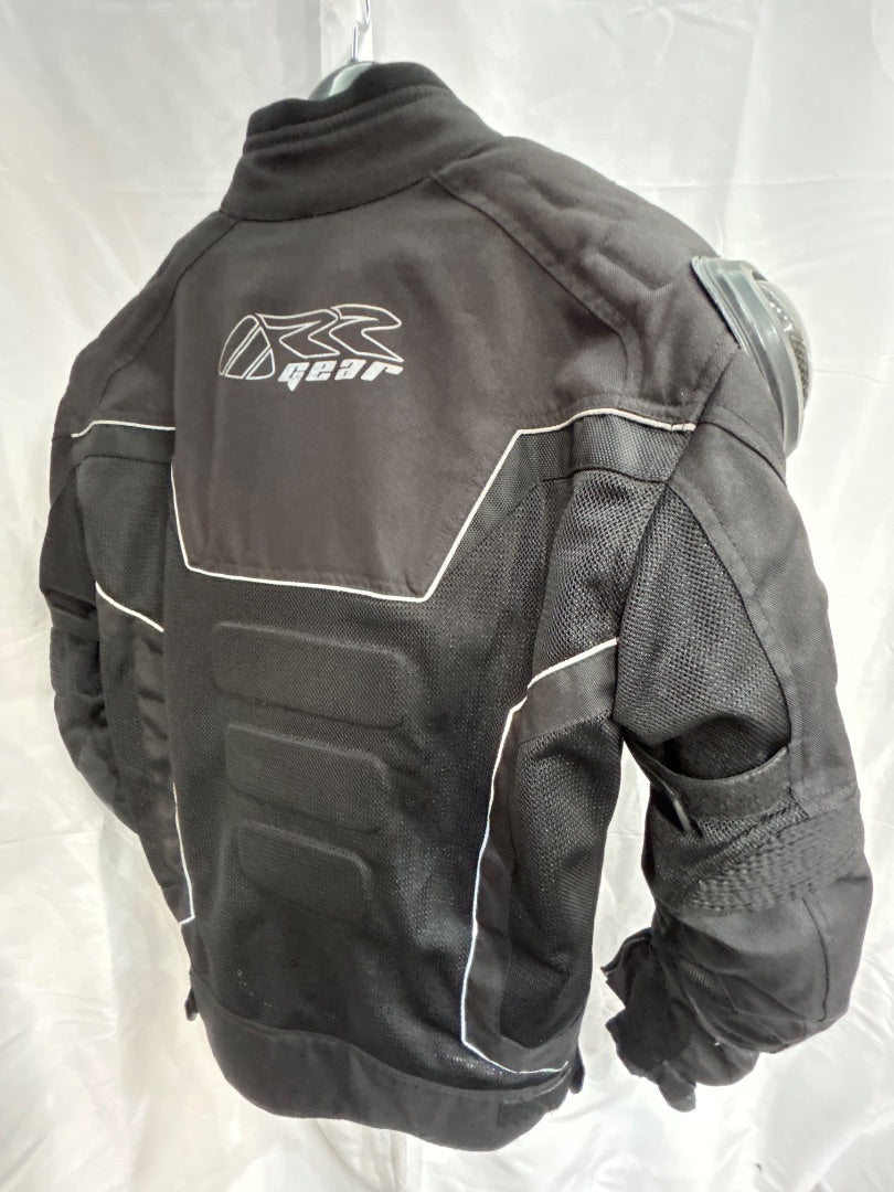 Fully armorable(not incl.) Cordura anti-abrasion. Shoulder sliders. Mild wear. Removable water-resistant warmth liner. Mesh panels. Men's fit.