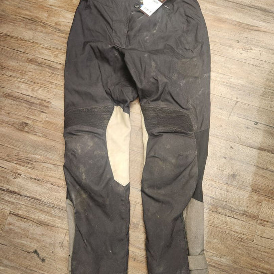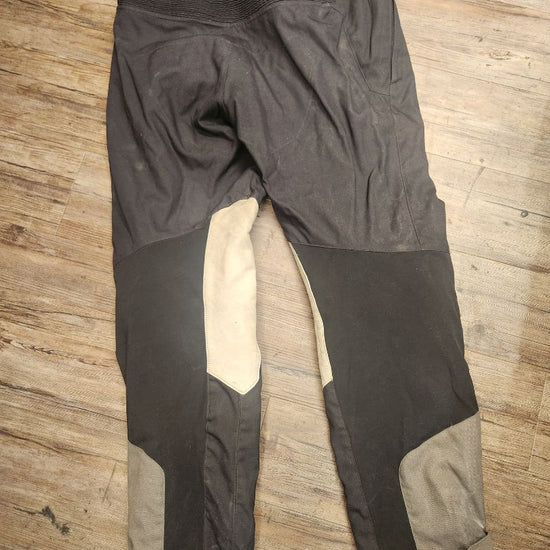 Knee and hip armor. Leather panels at inside of thighs. Men's sizing. Overall wear and staining. See also jacket #39475