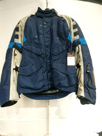 Touring style. All armor. Removable waterproof liner. Venting. Reflective elements. Slight wear and road staining. Men's sizing. See matching pants SKU# 040556