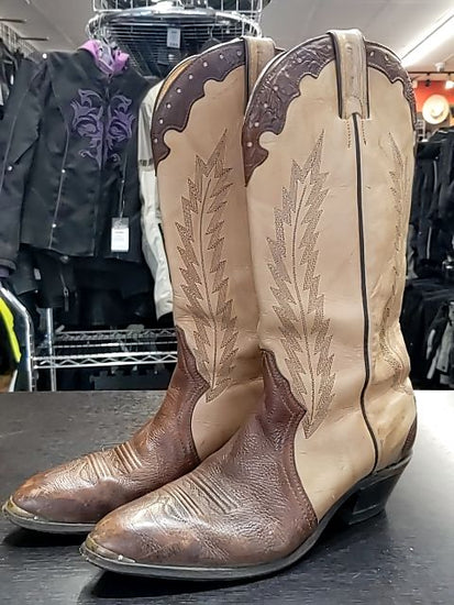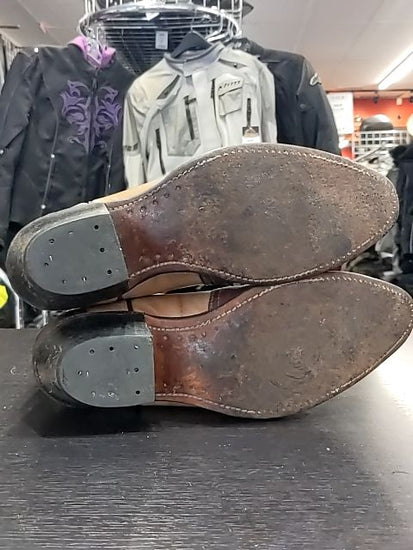 Leather lined. Welted leather sole. Brass toe plates. Some wear