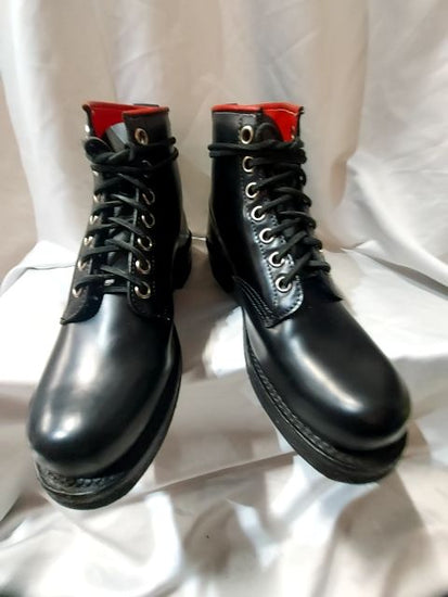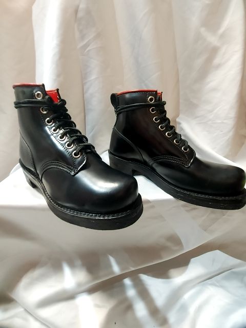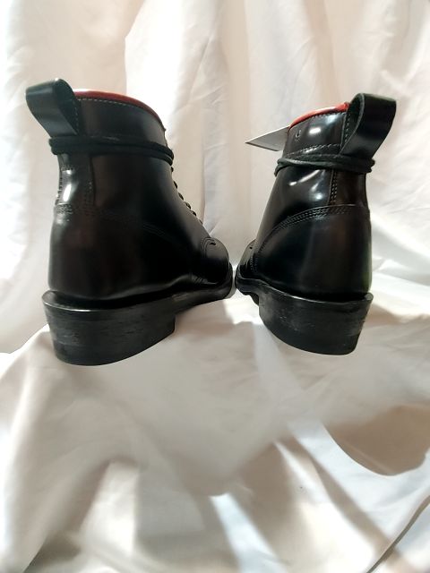 Handmade Vancouver 2016/17. PERFECT condition. Biltrite cord sole. Hi shine black chrome-tanned leather w/ red top of upper. Boot collector consignor. Stamped Size 9. MSRP $1495