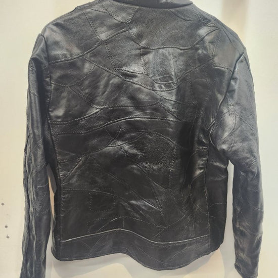 Vintage. Patchwork buffalo leather. Men's fit. Stitcholes from removed patches. Slight wear