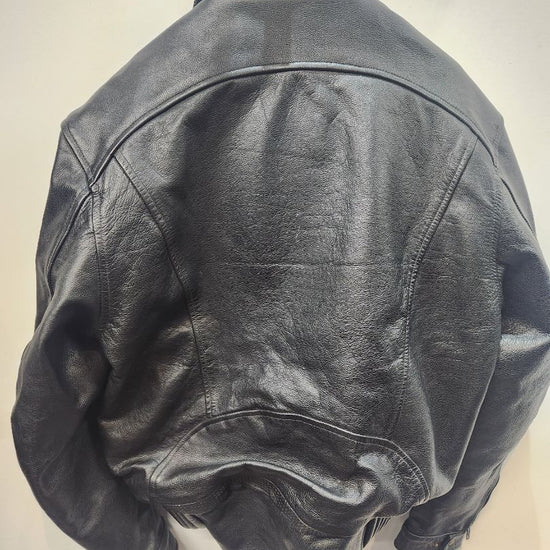 All armor. Double zip detail. Venting. Sturdy leather. Very little wear. Men's fit.