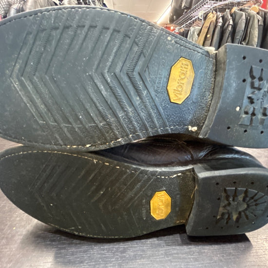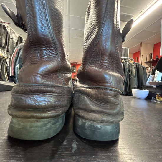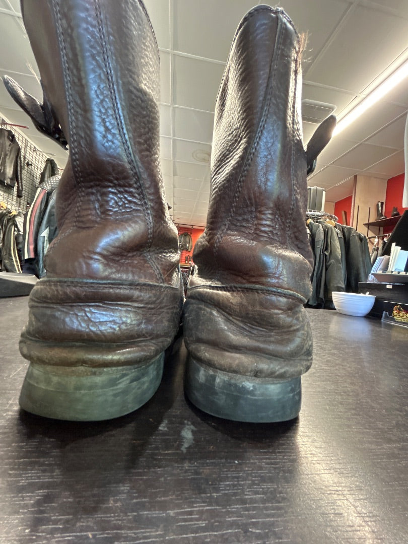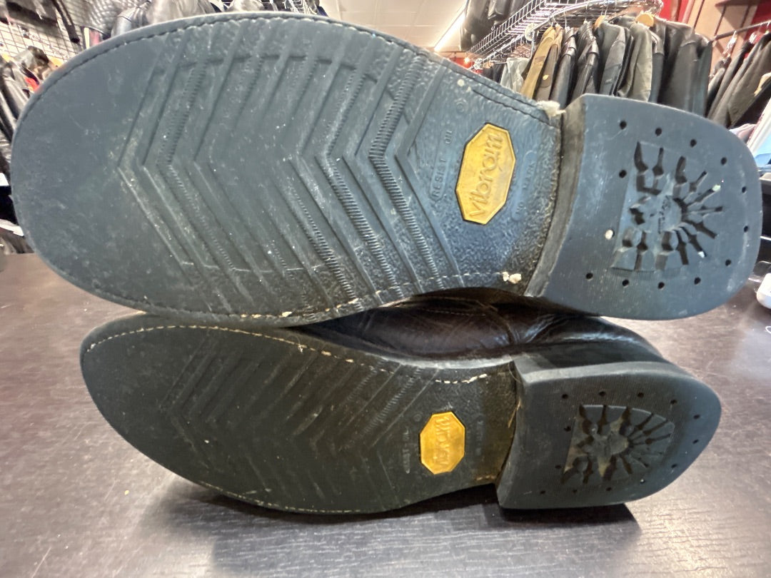 Very cool double belted slouch. Lots of wearv all ovber but lots of life left in them. Welted vibram soles.