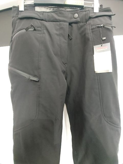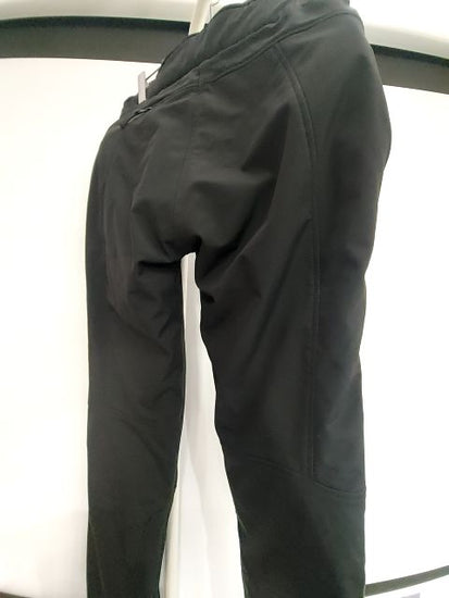 All weather. Waterproof at manufacture. Many waterproof pockets. Removable quilted liner. D3O knee & Hip Armor. 30.5" Inseam. VERY well made. Women's fit.