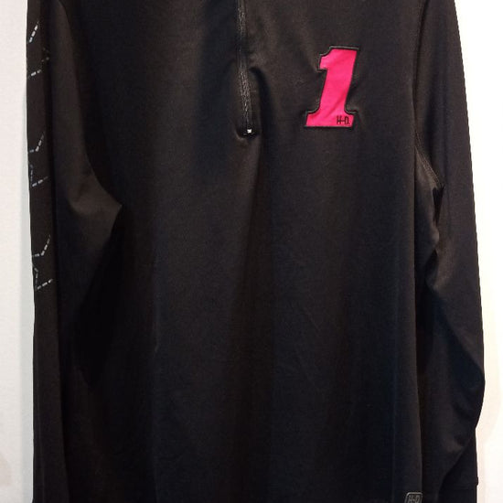 HD Performance. Has hood and front 1/4 zip. Very stretchy material. Woman's sizing.