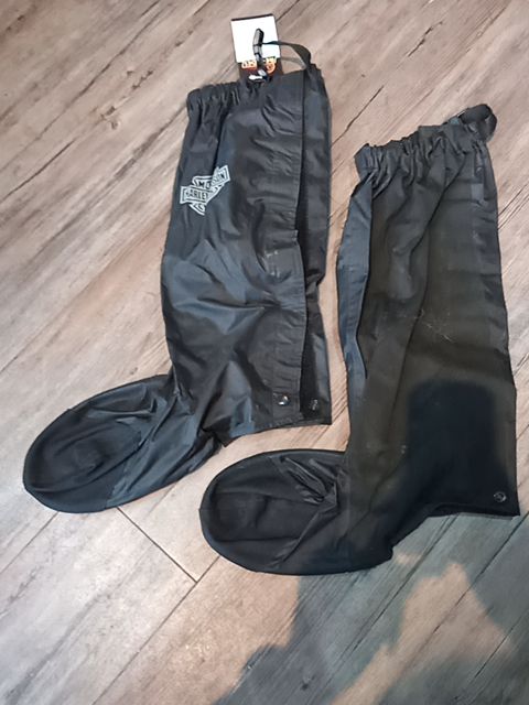 Waterproof overboots. Reflective HD logos. MSRP $78. Slight wear