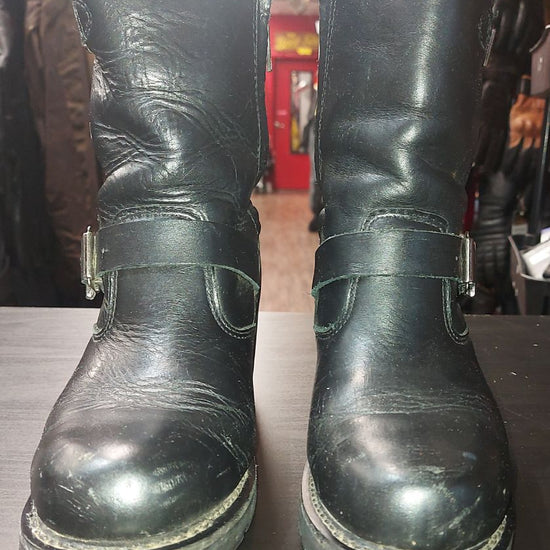 2 buckle side zip 'sassy' 9". Some overall wear and creasing. Women's fit.