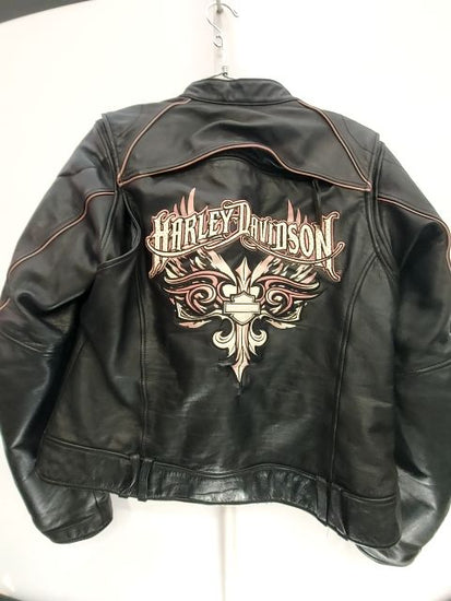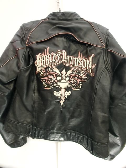 Armorable elbows & shoulders (not incl.) Vents. Liner capable (not incl.) Action back. Patchwork on the front and back w/ Harley Davidson graphics & Script. Women's fit.