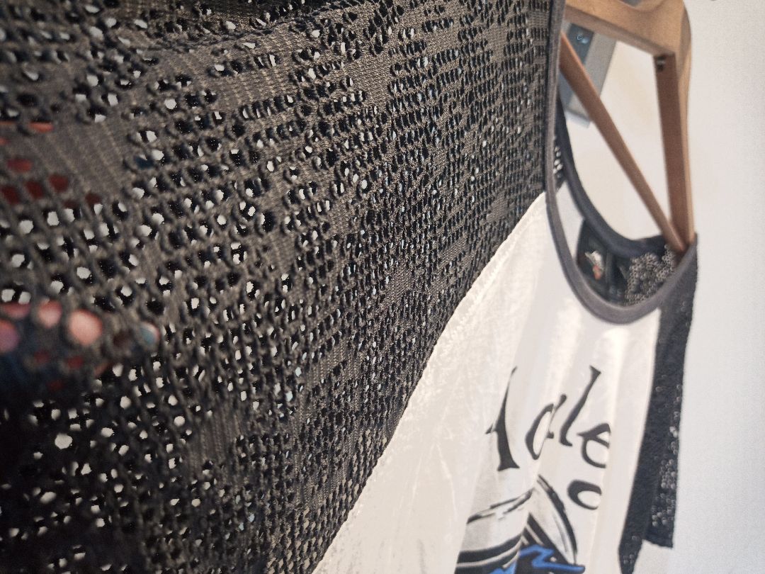 Genuine Harley Davidson. Scoop neck. Perforated fishnet-type breathable material on arms. Women's fit.