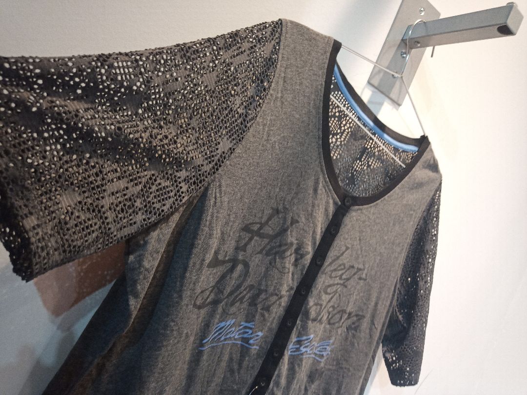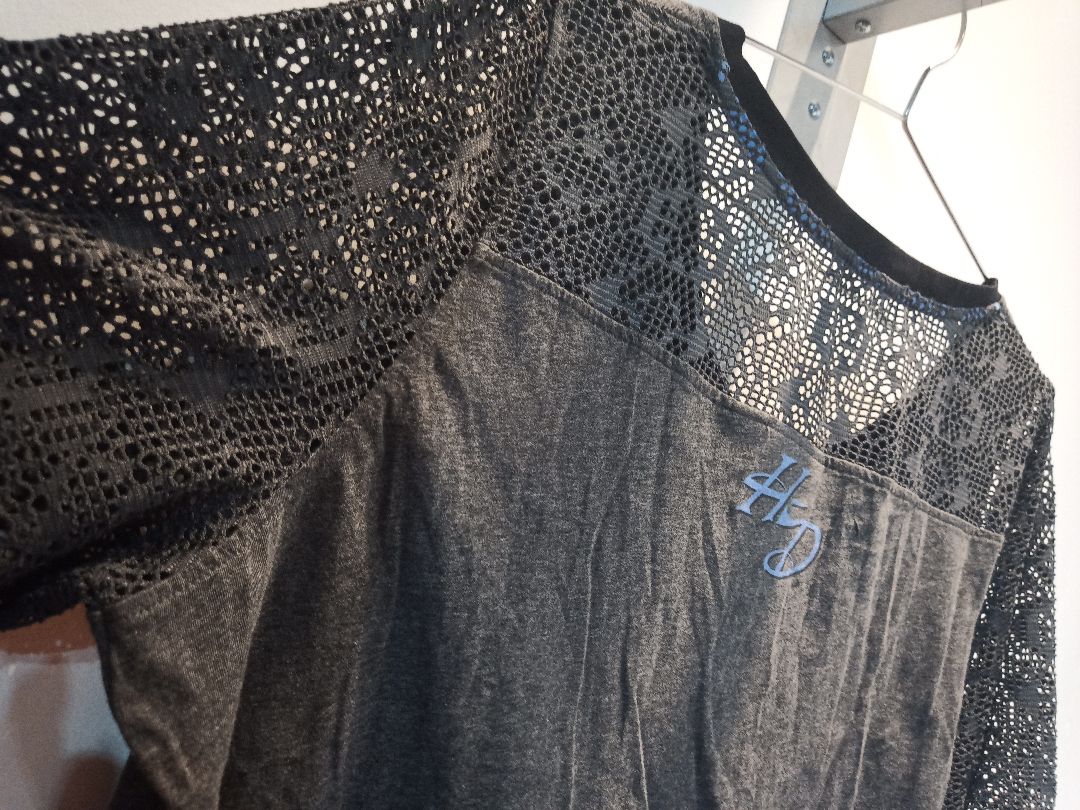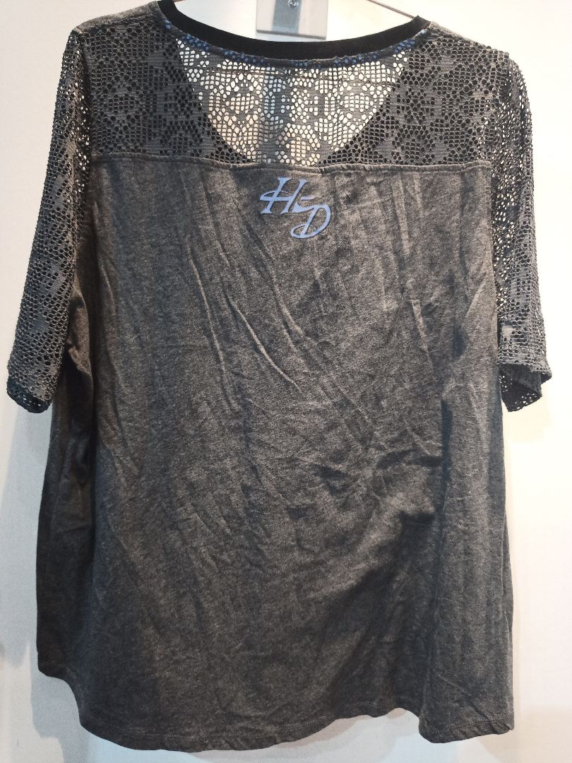 Genuine Harley Davidson. Scoop neck. 7 button front. Perforated holes on sleeves and back panel. Women's fit.