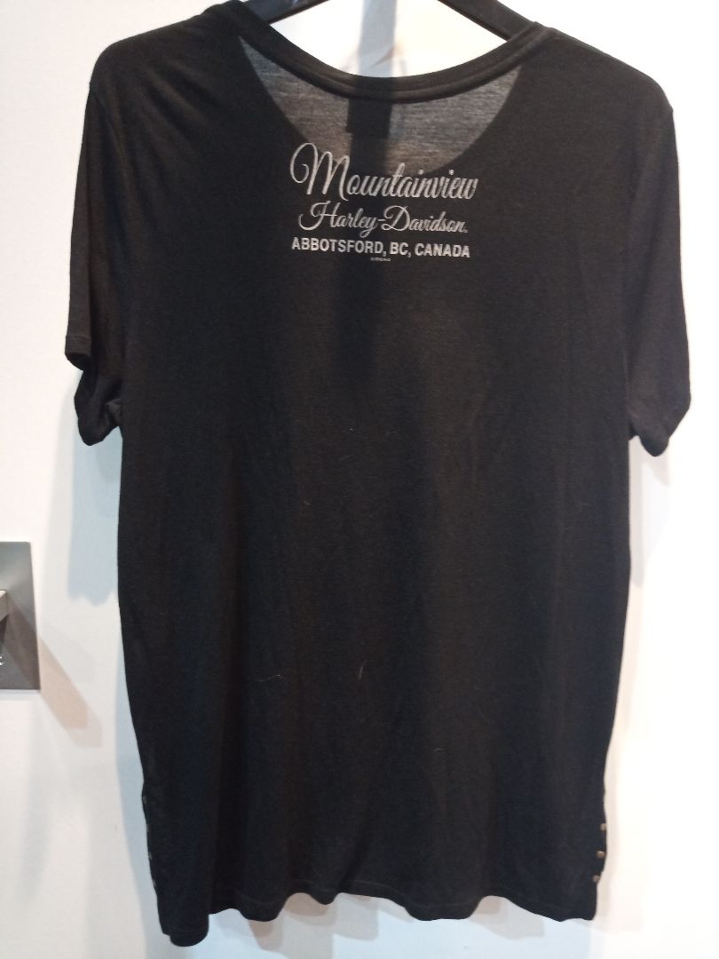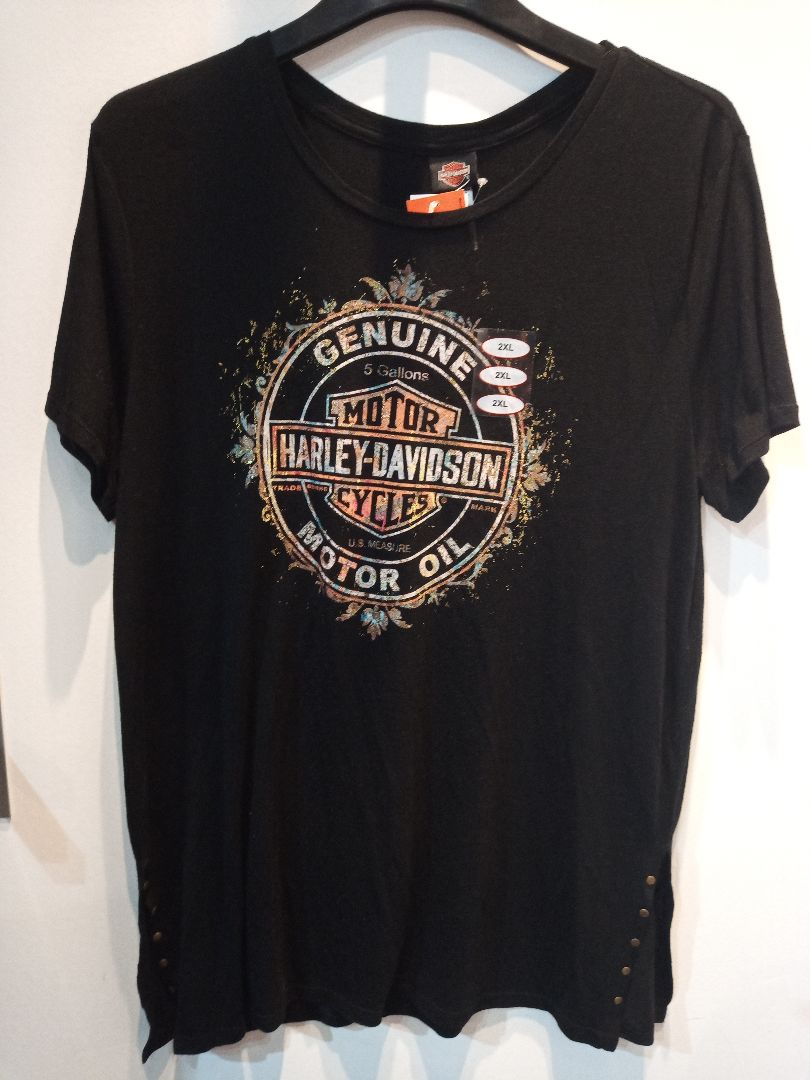 Genuine Harley Davidson. New w/ tags. Very slinky stretchy material. Slits at both sides with decorative brass-looking accoutrements. Women's fit.