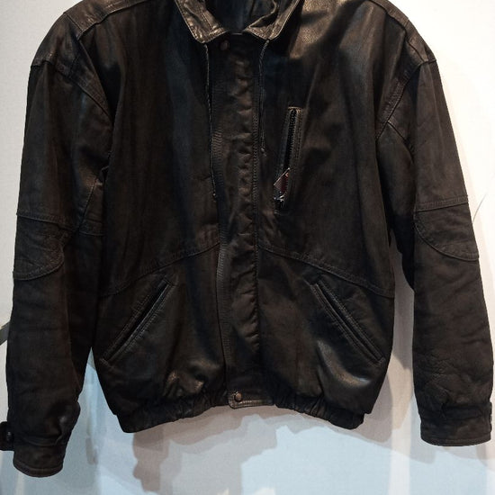 Midweight leather. Drawstring at collar. Men's sizing. Some wear