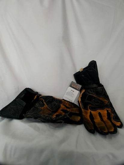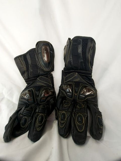 Long gauntlet version. Knuckle armor. Vents. Wrist armor. Reflective elements. Men's fit. Lots of use but no damage.