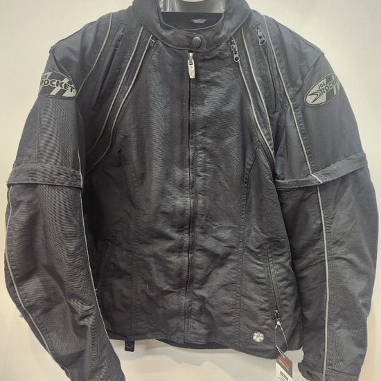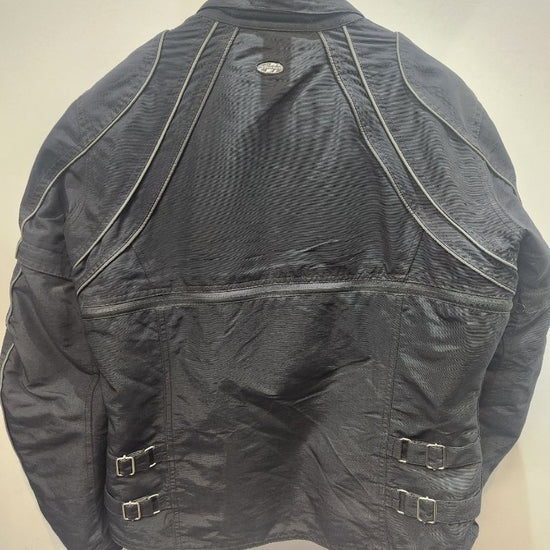 Spine armor. Shoulder and elbow armorable (not incl). Sleeve and body panels zip off to convert to mesh jacket. Reflective elements. Women's sizing. Slight wear