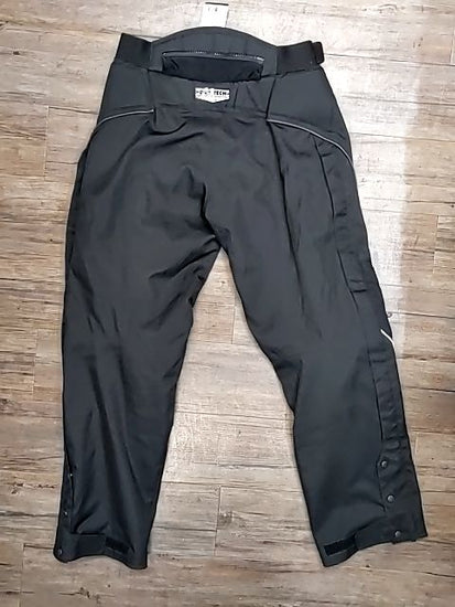 Knee armor. Waterproof lining. Zip open from cuff to hip. Reflective elements. Men's sizing. Slight overall wear