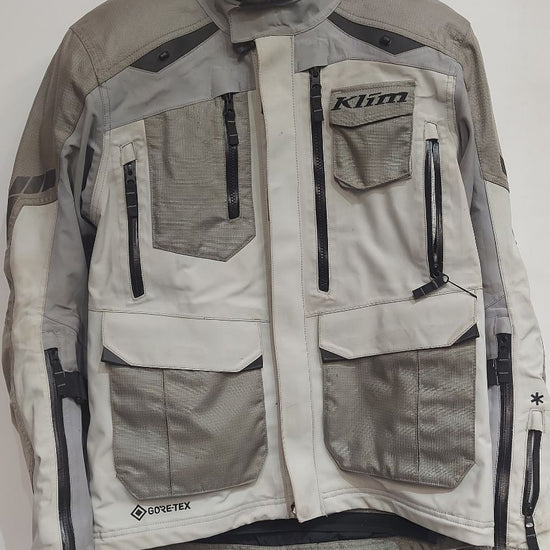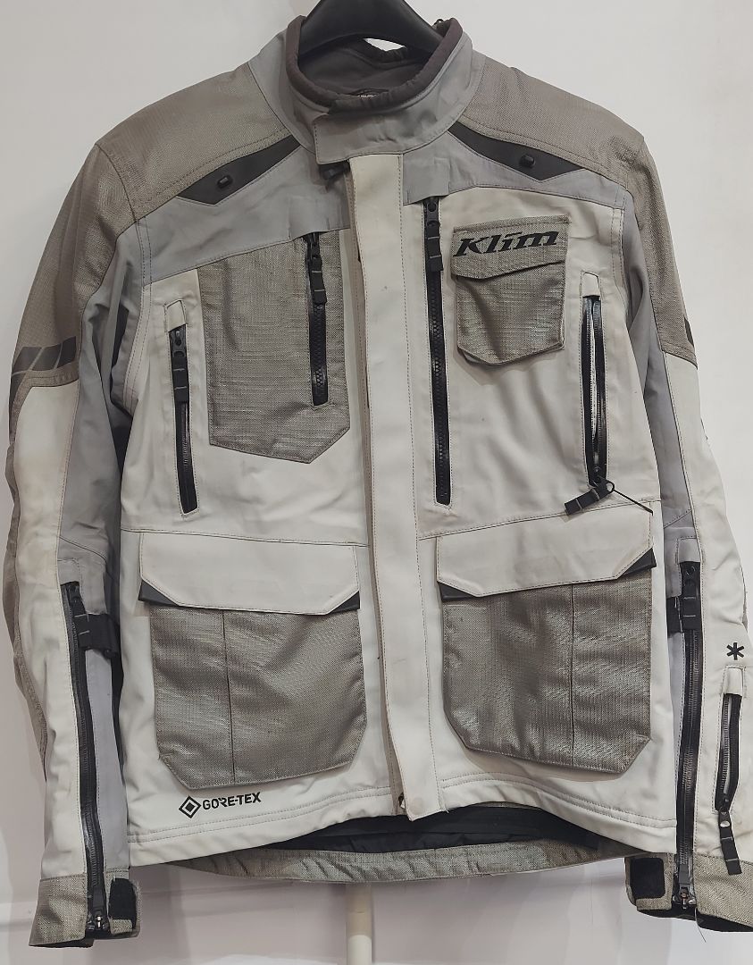 Touring style. All D3O armor. GORE-TEX lining. Venting. Reflective elements. MSRP $1039. Men's sizing. Slight wear and road staining. Left elbow beginning to wear through