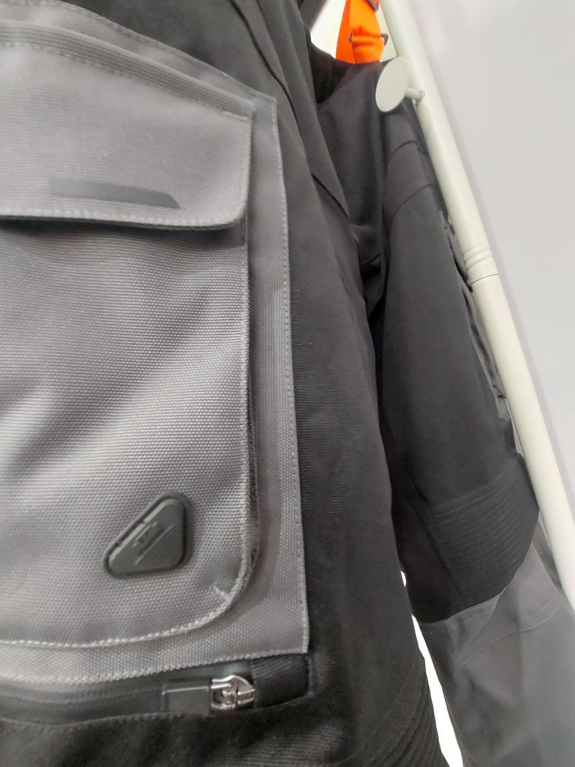 Older model. Knee and hip armor. Removable liner. Waterproof lining. Venting. MSRP $334. Men's sizing. Very little wear. See also jacket #040152