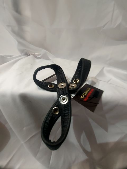 New. Cloverleaf cock and ball harness. Handmade with quality leather in Vancouver.