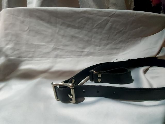 Made locally in Vancouver BC. English Bridal leather is: 1" wide & 37" Long. Adjustable buckle. Used for Parades / Law Enforcement / Troopers / Military / Costume etc...