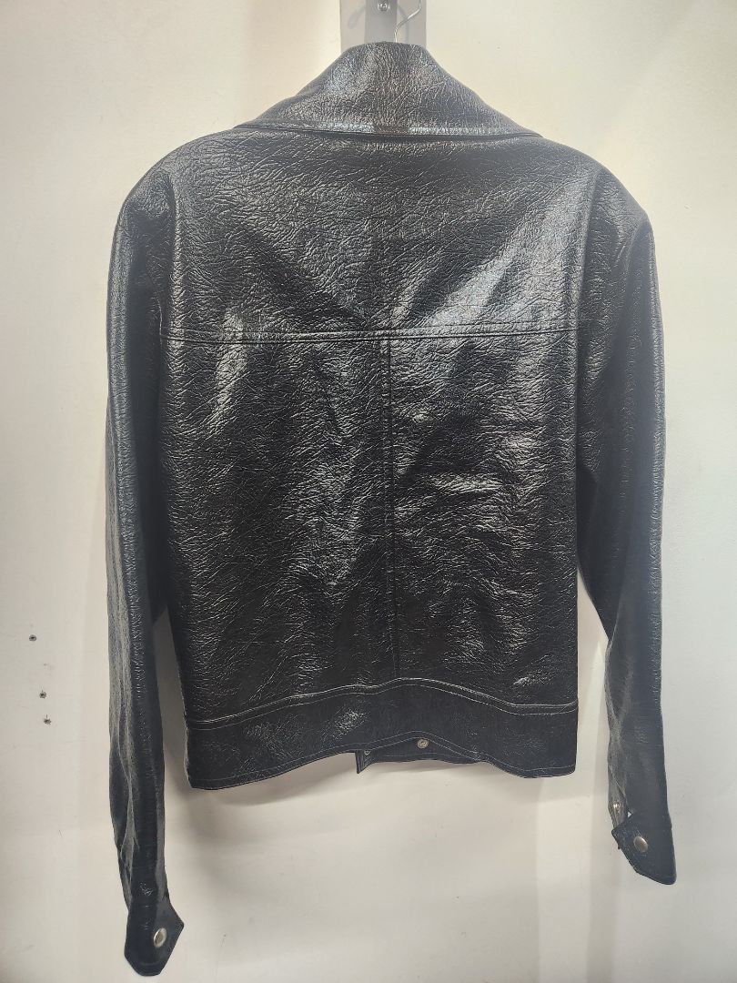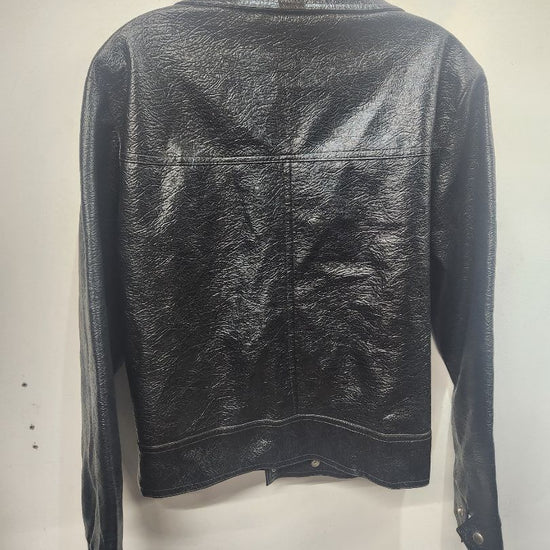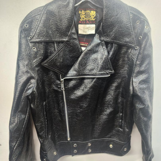 Vintage. Made in Japan. Classic biker style jacket, but made of textured vinyl, not suitable for riding. Men's sizing. Very little wear