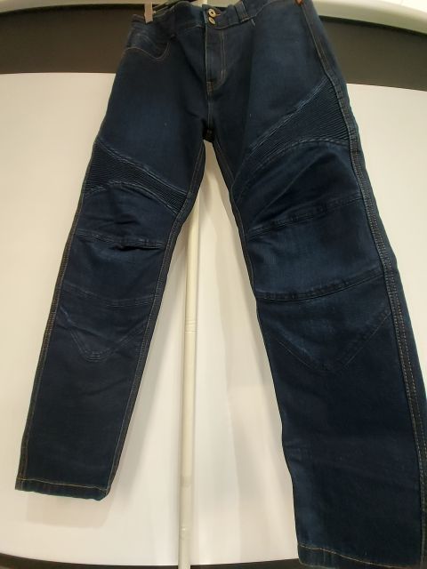 Knee (adjustable) & Hip armorable pockets (not incl.) Stretch denim. High waist. Abrasion resistant. Elastic stretch panels. Waist adjustment. Women's fit. Little wear.