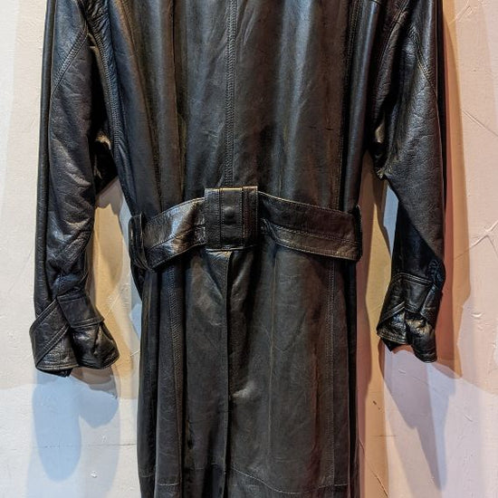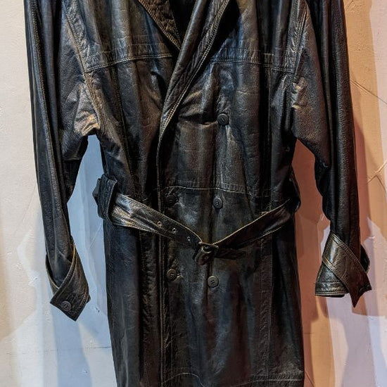 Vintage. Double-breasted. Full length. Belt included. Soft lambskin. Minor wear. Small tears in lining at cuffs. Chest 44". Men's sizing.