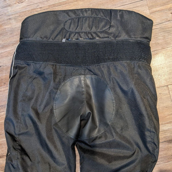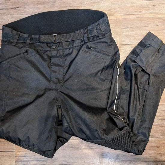 All armor (light hip pads). Zip & velcro fly. Half belt, one loop repaired. Removable quilted liner. Reflective elements. Velcro cuffs. Some wear. Men's sizing.