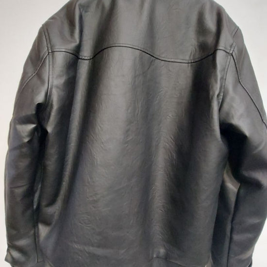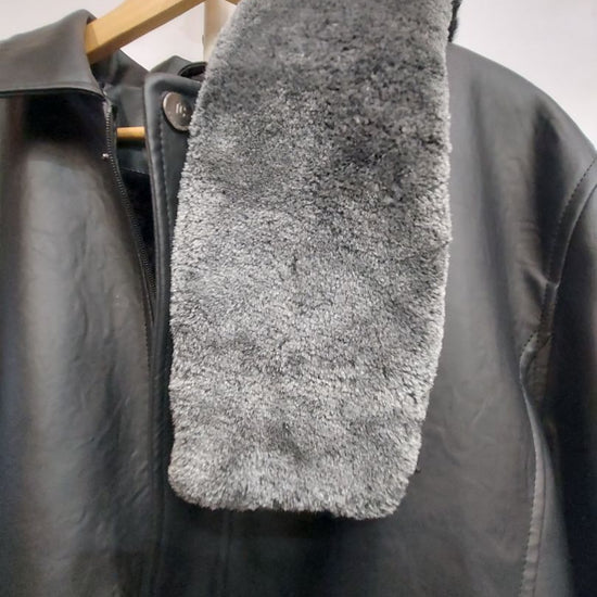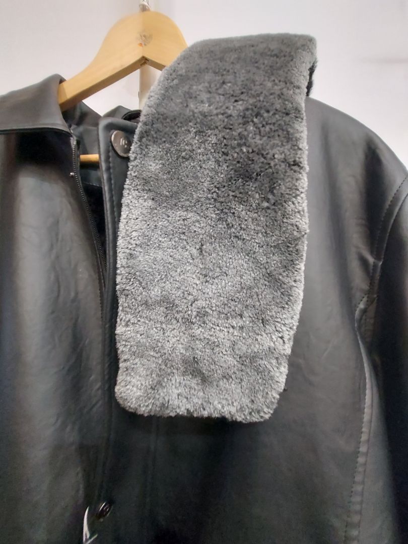 New w/ tags. Fashion not for riding. Vegan leather. Super soft lining and removable faux fur collar adornment. Storm flap with snaps over zipper. Hand warmer pockets. Men's fit.