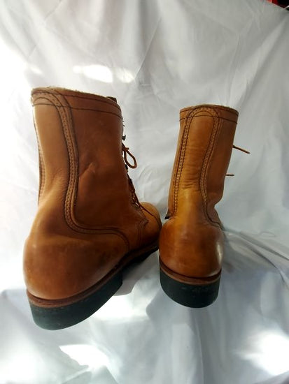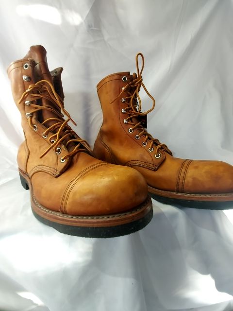 Vintage. Discontinued Model. Steel Toe. Welted & oil resistant soles. 6 grommet hole & 4 hool lacing system for stability. Some wear / dings / staining. Awesome boots!