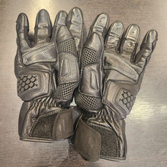 Older model. Knuckle armor. Palm sliders. Men's sizing. Slight wear