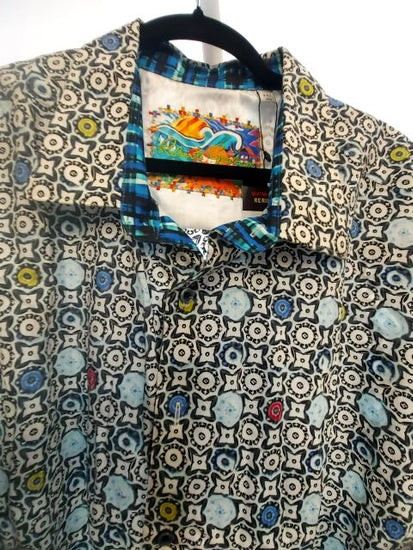 Art in shirt form. Robert Graham uses bold patterns and contradicting collars as statement pieces. This shirt is covered in an Abstract Geometric pattern. Perfect summer wear. Men's fit.