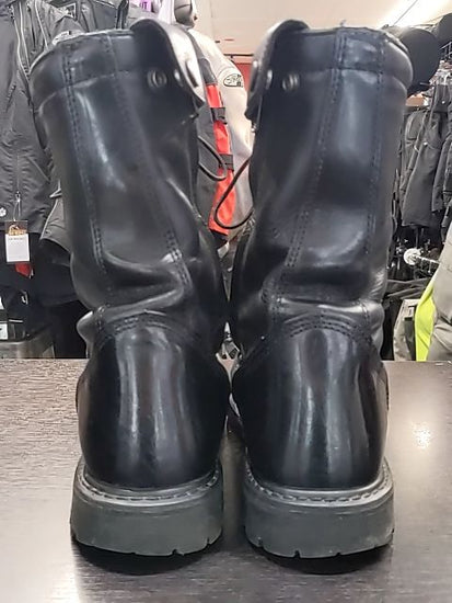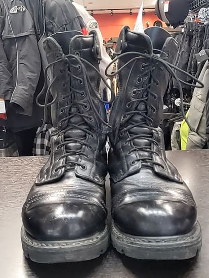 Inside zip. Shineable finish on toe and heel. Goodyear welt sole. MSRP $238. Some wear and creasing