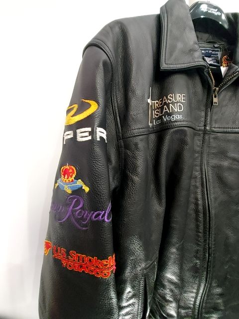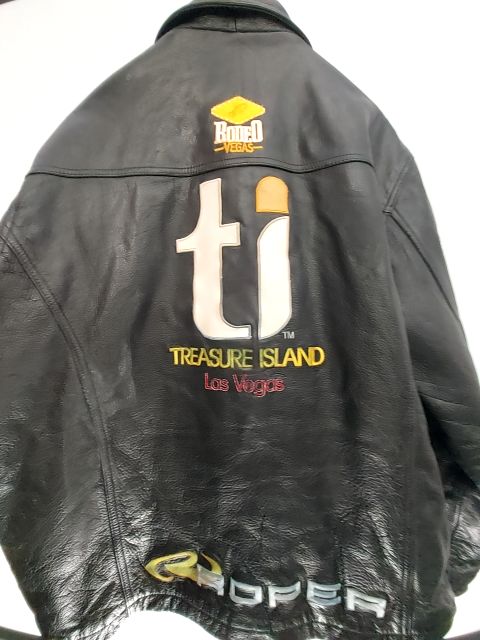 Vintage Rodeo Vegas VIP jacket. Rare embroidered leather. Western cut. Midweight cowhide. w/ natural grain. Probably the only one in Canada & super cool item. Men's fit.