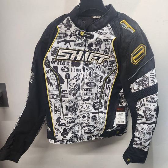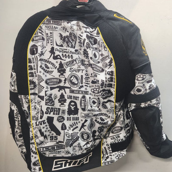 All armor. Removable liner. Reflective elements. Men's sizing. Some wear, especially to collar