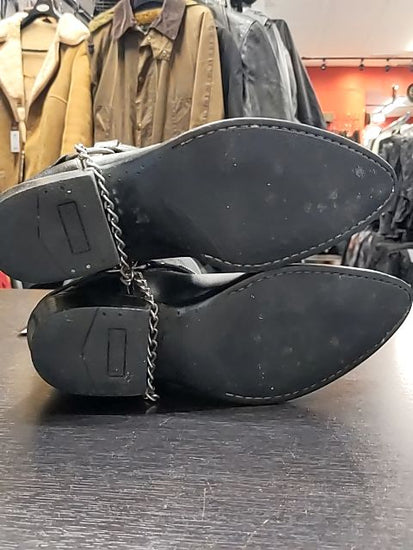 Comes with detatchable boot bands. Metal toe plates. Leather lined. Goodyear welted sole. Very slight wear