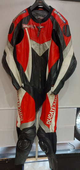 Vintage. Ducati branding. Elbow and knee armor. Spine, hipe and shoulder armorable(not incl.) Racing pucks. Men's sizing. Some wear