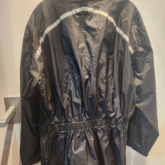 Reflective elements. Corduroy lined collar on jacket. Under foot stirrups and attatched suspenders on pants. Men's sizing. Very slight wear