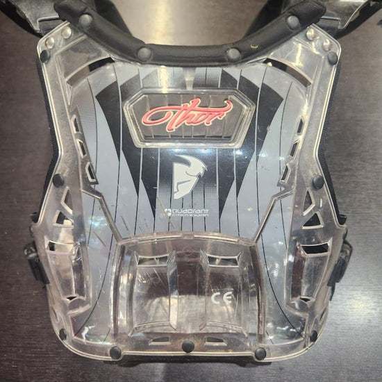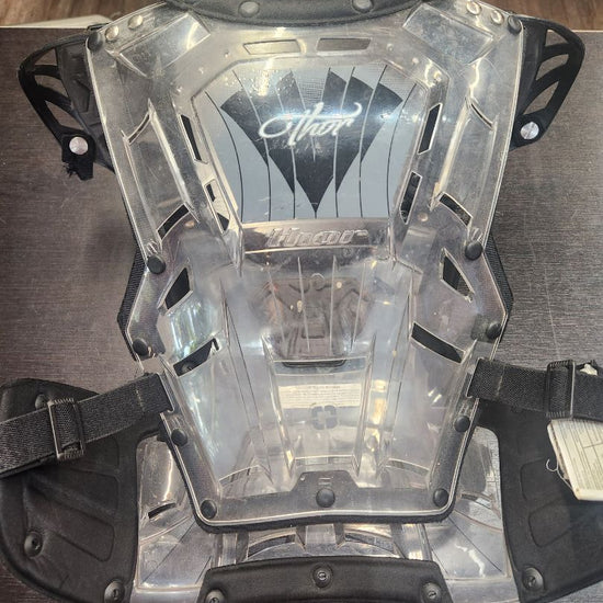 Motorcross style chest armor. Once had shoulder/upper arm pieces, but no longer. Women's sizing. Overall wear and scratching