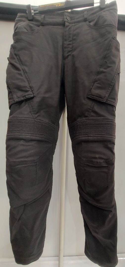 Slim fit 5 pocket jean style. Hips & knees D3O ghost armor. Stretch wax. Waterproof liner. Inseam 30.5"Men's fit. Appear unworn.