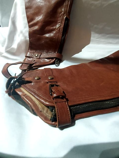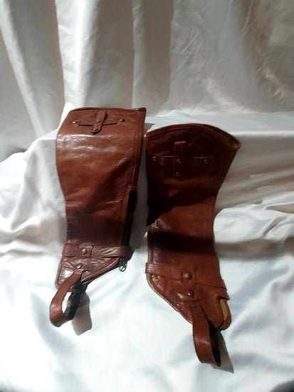 Vintage, handmade leather gaiters with boot straps. Late 60's-Early 70's. Soft but durable leather. Back zips, Excellent original hardware. Great shape for age. Rare!