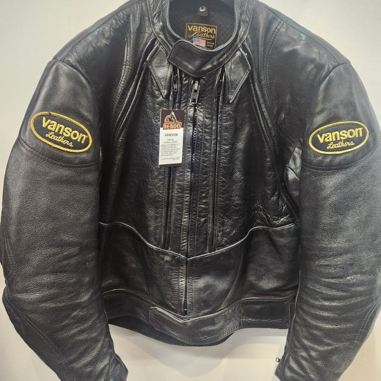 Elbow armor. Spine and shoulder armorable with Vanson velcro style armor(not incl.) Deep triangle shaped chest vents. Men's sizing. Some overall wear