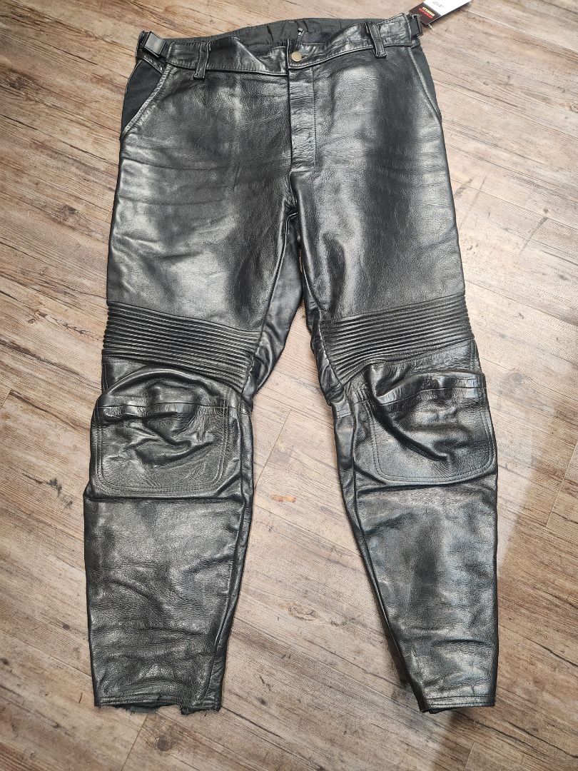 Fully lined. Knee armorable(not incl.) Accordion panels at knees. Men's sizing. Some overall wear